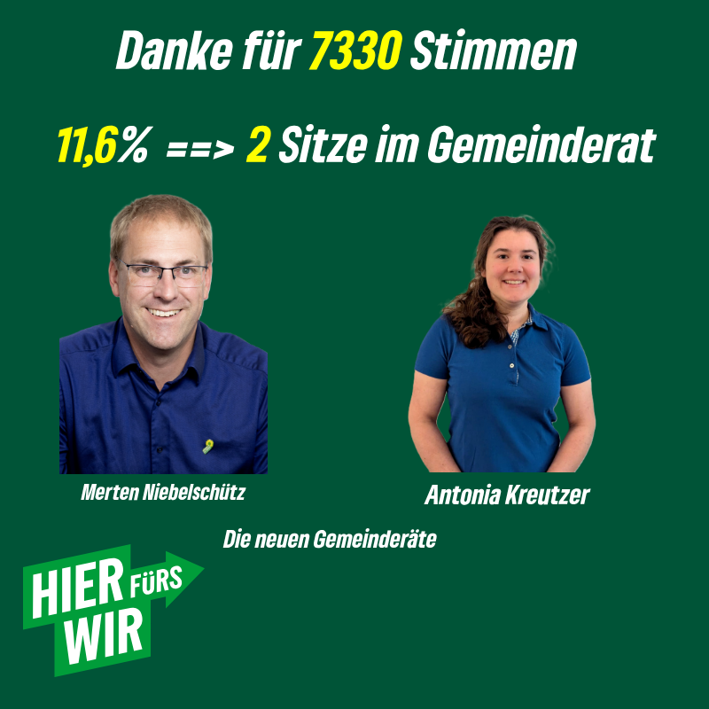Auch im neuen Gemeinderat sind wir damit weiterhin mit zwei Sitzen im 20-köpfigen Gremium vertreten.
